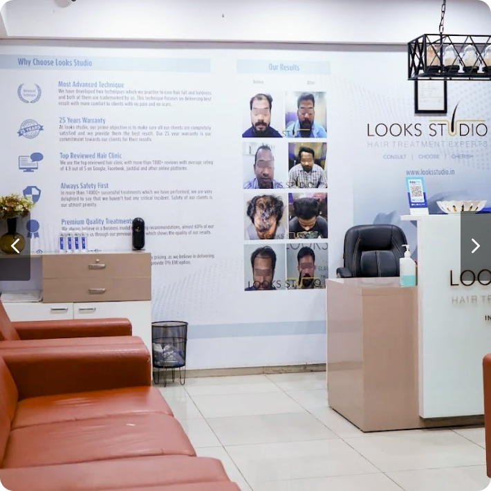 Looks Studio Bengaluru is a one-stop solution for all your look related issues. Looks Studio is located in the poshest location of the city, but the cost for Hair Transplant and other Hair fall treatments is very pocket friendly. Looks Studio Bengaluru doctors specializes in Hair transplantation FUE and the centre offers a great ambience and 100% satisfied treatment results.